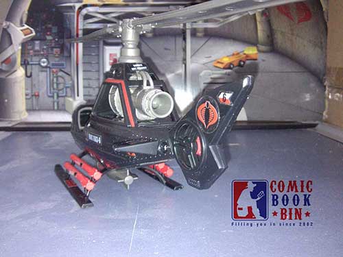 The Cobra Fang sits on two skids, so it is very stable. The Cobra pilot’s ankles are weak so he can fall easily when standing up next to other G.I. Joe actin figures. However, because he is meant to be a pilot and always seating down, it is not as much of a problem. He does not come with an action figure stand.