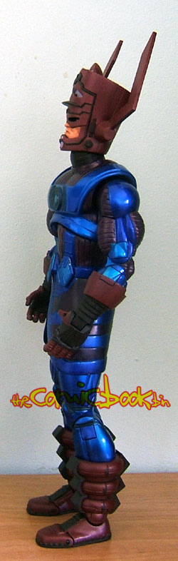 The sculpt is pure Jack Kirby rendered to life. The size of some decoration and stripes on his suit are different from in the comics because some artists make them thick, while others, thinner. The size of the antennas and their distance is also debatable. Another major changes are the ridges on Galactus, boots. They are not the same weight everywhere. Finally, there is far more grey on Galactus than some in some comics.